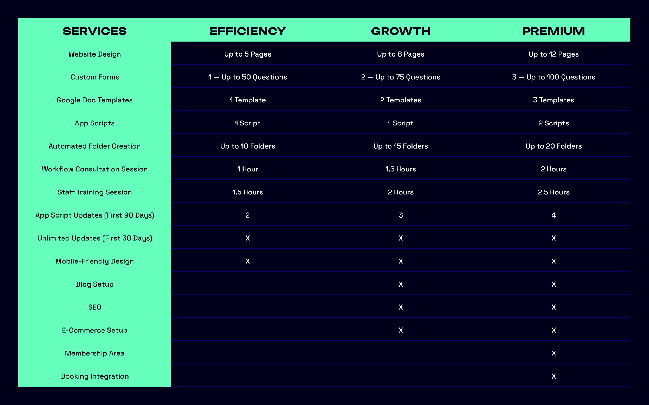 Efficiency Website: Up to 5 pages—plus mobile-friendly design